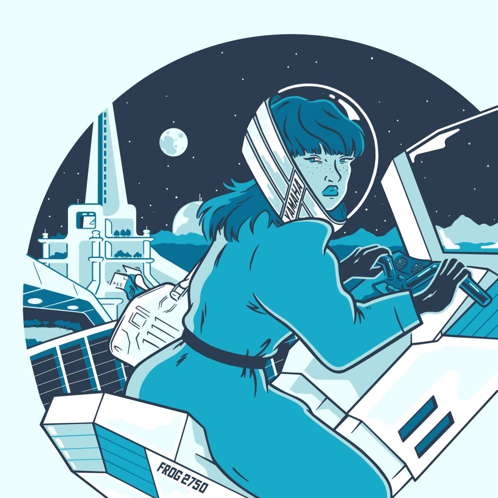 The shades of blue inspired me to think about the future—the darkest ones, the night. And my mind could only think of the old covers of sci-fi books. I wanted to create something like that.