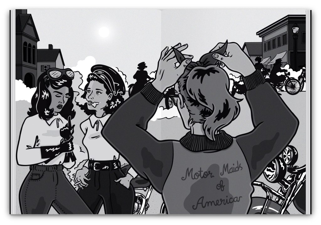 The Motor Maids of America was the first women’s motorcycle club, founded in 1940 by the brilliant Dot Robinson, the first female motorcyclist. The club is still active today with over 1,300 members from the United States and Canada.